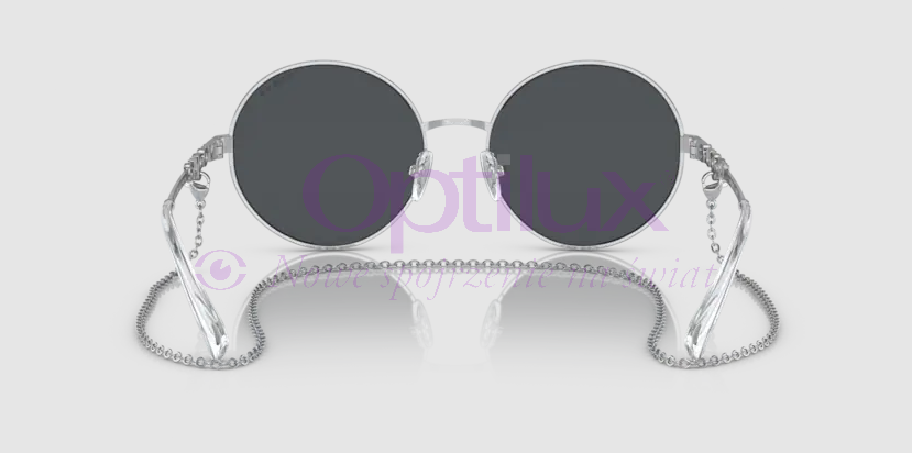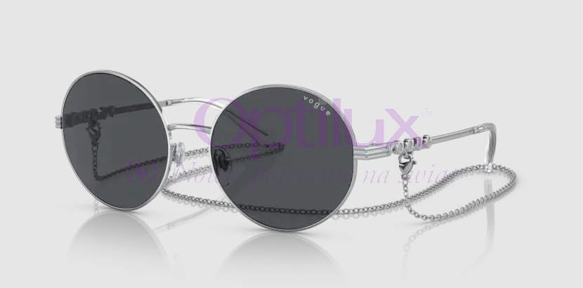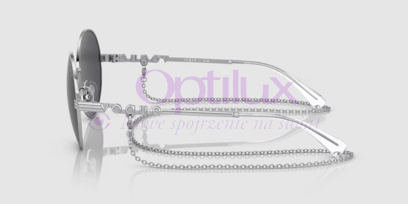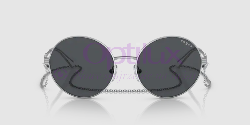 Okulary przeciwsłoneczne VOGUE 4227s 32387 to supermodne i stylowe okulary! Okrągły kształt będzie pasował do wielu kształtów twarzy, a połączenie srebra z ciemno-szarą soczewką dodaje jej ponadczasowego stylu! Ciekawym elementem jest srebrny łańcuszek, który przyczepia się na literkę G.